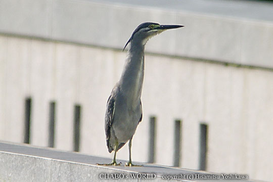| こうして並べるとラチチュードの広さが歴然ですねぇ。(~~; ヤマセミにばかり気を取られていてはいけません。ササゴイさんもちゃんと撮影しなきゃ。 |