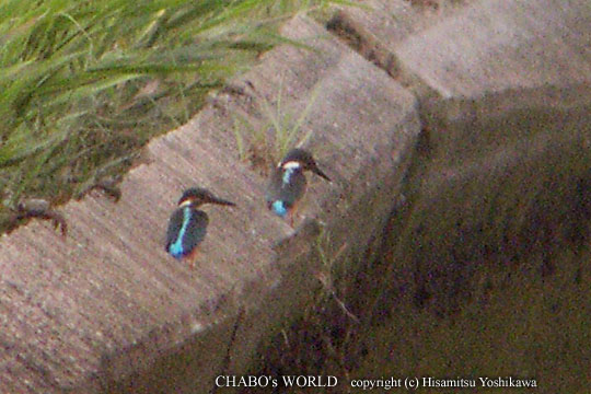 ![]() 遙か彼方のカワセミたち。3420mm相当 大トリミング、ほぼピクセル等倍です。r(^^; |