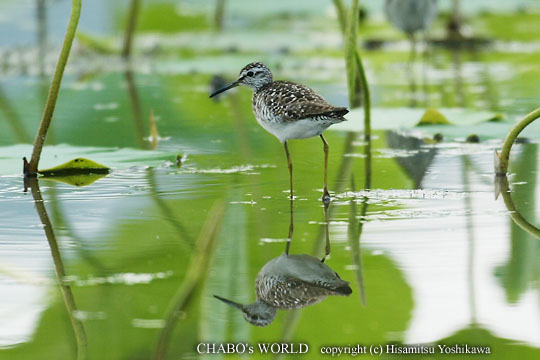 | 昨日のお休みが効いたのか今朝は早起き出来ました。早速今津へ向かいます。そろそろシギチシーズン開幕ですからね。r(^^; 田尻の田圃入り口で撮影準備をしてるとdaruma-ppさん、続いて國友さんが来られます。皆さん今日は早いですねぇ。蓮田を見ながらふたつ池へ向かいます。飛んでくゴイサギ2羽。あとはバンとサギくらい。ヨシゴイの声は聞こえません。 蓮田の方をみると國友さんが何か撮影中です。タカブシギかな? ふたつ池で待っても埒があかないので移動しましょう。さっき國友さんが見てた蓮田へ行くとはやりタカブシギでした。4〜5羽の小群で蓮の葉の間をウロウロしてます。バンの若も2羽彷徨いてます。 |