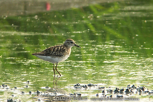 | 田尻から工場裏へ移動します。が、今朝もサギばかりでした。工場裏から太郎丸へ再び移動します。休耕田をじっくり見ていくとツバメが飛び交う休耕田に1羽のヒバリシギが居ました。 |