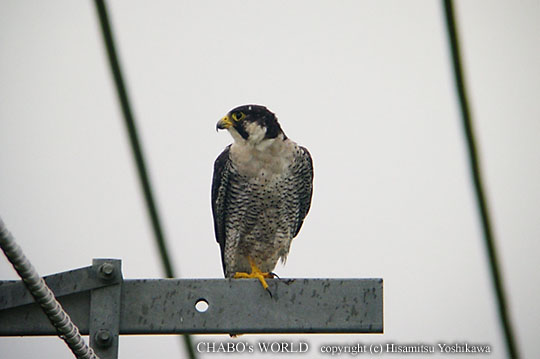 | 休耕田をくまなく廻りますが収穫無し。工場裏へ移動すると國友さんの車が前の方を走ってます。少し話をしてから再び工場裏を廻ります。こちらもサギ類だけです。山手の電柱を見てるとハヤブサが居ました。久しぶりですねぇ。 |