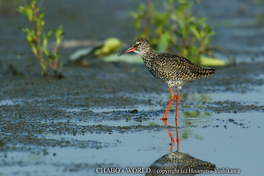 | やっと快晴です。それでもあまり気温も高くなく気持ちの良い朝です。 今朝も今津へ向かいます。田尻の田圃を見ると早速、逆光の中、何やら1羽のシギの姿があり、回り込んで見るとアカアシシギでした。 |