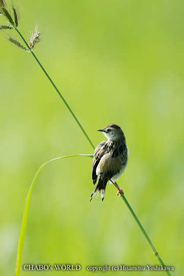 | デジスコでも撮影しようと思ったら飛ばれて奥の田圃へ。あまりに遠いので再び回り込もうとふたつ池の方へ迂回してたらdaruma-ppさんが来られてました。今朝はヨシゴイが姿を見せたとか。おっと、話もそこそこにアカアシの所へ急ぎます。が、回り込んだ所の先の方に犬が散歩中です。むむ、もしかして? 静かに田圃に近づくと案の定、アカアシの姿はありませんでした。(ーー;) 近くに舞い降りたかも知れないので田尻の休耕田と蓮田をぐるぐる回りましたが発見出来ません。イソシギかタカブと思われるシギが上空を飛んでるのが見えますが途中でロストして行方不明になります。 諦めて太郎丸へ向かいます。と、休耕田にコアオアシらしきシギが1羽居ました。撮影出来る所まで移動してると後ろから農作業の車が通り、飛んでしまいました。なんだか今朝は着いてませんねぇ。(ーー;) 太郎丸から工場裏へ移動します。休耕田を入念に見ていくとセッカが羽繕い中でした。 |