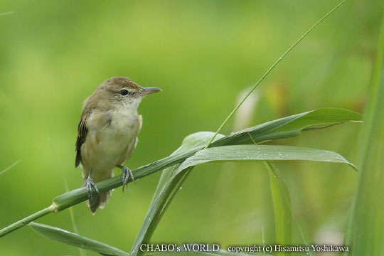 | 今朝もちょっと寝坊しましたが、昨日、休んだし、雨も止んでいたので出撃します。 いつもの様に田尻の田圃と蓮田を廻りますが何も居ません。ふたつ池に行くと釣り人さんと蓮の葉っぱを採ってる人が数人。これじゃ駄目かな?と諦めていたらオオヨシキリがウロウロしてるのが見えます。地鳴きに替わって久しぶりに見るので撮影しておきます。 |