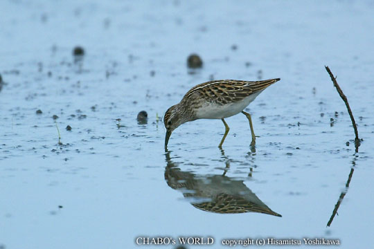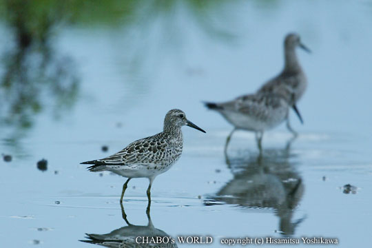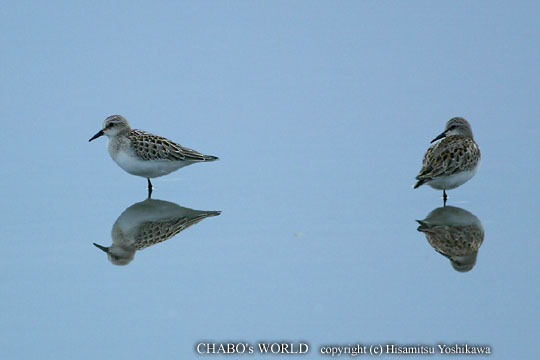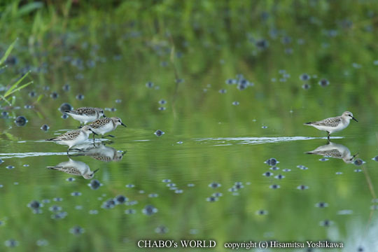 ![]() トウネンの群れと一緒に居たヒバリシギ |