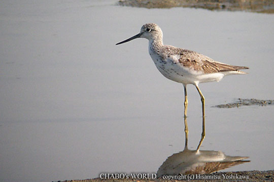| 元浜から工場裏へ移動しますが、特に収穫はなし。タカブシギを2羽ほど見ただけでした。 河口をみるとまだ潮が引いてるので周船寺川水門へ行ってみます。 水門へ向かう途中、周船寺川西側の休耕田にオバシギ6とトウネン1が居ましたが、もろ逆光線なので撮影は諦めます。 水門に着くとアオアシシギ20+が川の上の方と水門外側にウロウロしてました。 |