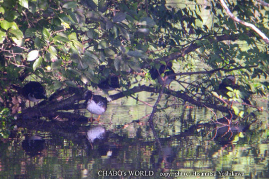| 結局全部で8羽ほどのオシドリを確認しました。↑の写真は全部♂の様です。 8時過ぎまで粘りましたが他に鳥は見られませんでした。 |