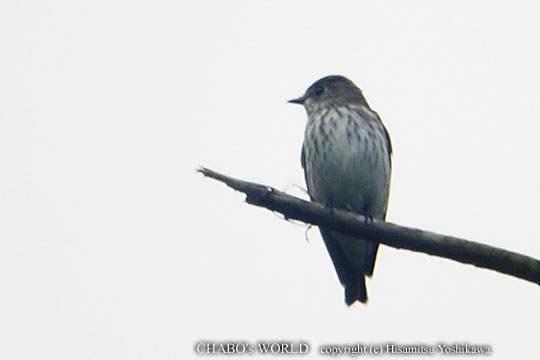 | 今日の天気は下り坂だそうで午後からは雨だとか、朝から薄い雲に覆われた曇り空です。今津か野外活動センターか迷ったのですが先に野外活動センターへ行ってみて鳥が居なけりゃ今津へ移動しようと思いながら一路野外活動センターへ向かいます。 頬白橋まで一気に車で上り、そこで様子見です。去年、エゾビタキが好きだった林を見てみますが居ない様子。ん〜、駄目かな?と思ってたら遠くの鉄塔にミサゴが居ます。デジスコでもしようと望遠鏡をだして撮影。引き揚げようかと車の所に戻ると砂防ダムの下側に小鳥の姿が。。。望遠鏡で見るとエゾビタキみたいです。デジスコで小鳥はどんなものか実験も兼ねてデジスコセットを抱えて砂防ダムへ向かいます。 エゾビタキは2羽居て、交互に虫を捕ります。枝にとまった所を3倍ズームで撮影します。 |