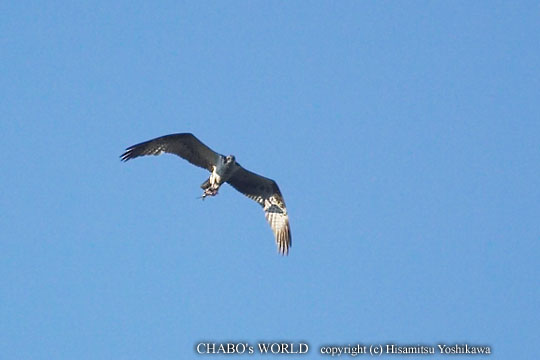| さらに登ってじっと待ってると鉄塔上空を魚を持ったミサゴが舞います。するともう1羽も出てきて2羽とも旋回しながら稜線に消えます。 |