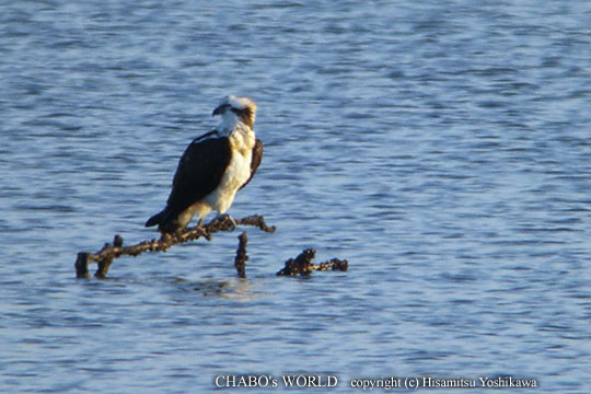 | 今朝も良い天気です。今津にコハクチョウが来てるそうなので探しに行きます。 江の口川水門から入ると半分干潟が残ってるくらいの潮です。コーナーへ行くと砂の州の下流側にクロツラ達がお休み中、さらに先にはユリカモメ、ウミネコが群れてます。見渡しますがコハクチョウは見あたりません。田圃か池でお休み中でしょうかね。 ミサゴが流木に止まっていたのでとりあえずデジスコします。 |