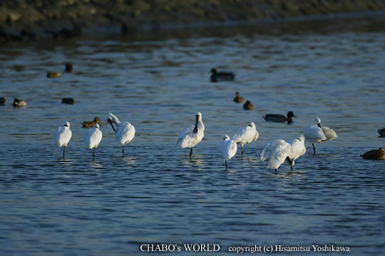 | 水門から河口をみるとクロツラ達が休んでました。 |