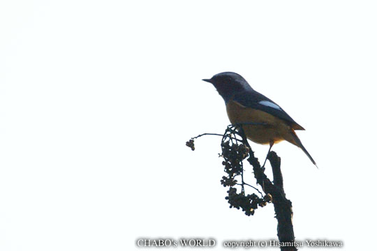 | もろ逆光でしたがこいつがルリビを追い回した♂です。r(^^; 公園内をウロウロしてるとヒヨドリ、シロハラの声も賑やかになってきます。ですがぜんぜん姿は見せずに通り過ぎていきます。隣の山の稜線にツグミが見えます。カラスが飛ぶとツグミも飛んでいきました。あまり時間がないのでここらで引き揚げます。 |