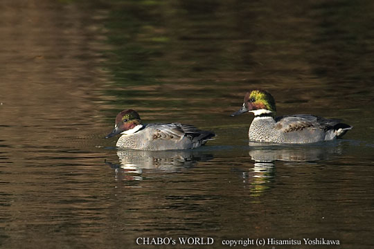 | 寒くて布団から出られず、這い出したのは8時でした。(^^; 北風が強くて寒い朝です。それでも晴れてきてるので出かけることにしました。海沿いは風が強いだろうとこの前見つけた焼山池にいってみます。 今朝もヨシガモ♂2と♀2、ヒドリガモ♀1が浮かんでます。他にはカイツブリ1、アオサギ1、ゴイサギ1が居てのんびりムードです。ヨシガモを撮影しましょ。 |