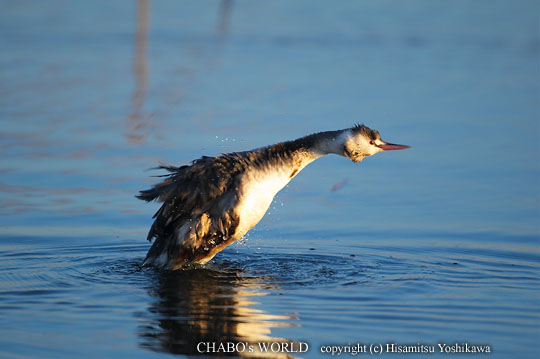| 結構良い感じですね。但し、太陽が昇りどんどん廻りが明るくなるのでMモードだと切り替えが大変です。r(^^; 西の池に行くとカワセミが水路から池を越えてクリーク側へ消えます。 珍しくカンムリカイツブリがカイツブリ達と一緒に浮かんでました。結構近かったのでノートリです。(^^; |