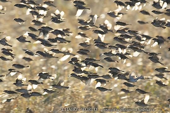 | ここら辺でMモードについて行けず、今日はAFの感触を覚える事を優先してAVモードに戻しました。ある程度太陽が昇ってからだとMモードが使えそうです。ま、慌てずじっくり行きましょう。r(^^; さてと、田尻から堤防へ上がり、干潟を見てみると今朝もド干潮です。RC飛行場横の葦原でホオジロとオオジュリンを確認。同じ葦原にはスズメの大群が居ます。この大群が時々田圃に飛んではまた戻るを繰り返しますので撮影してます。(^^; |