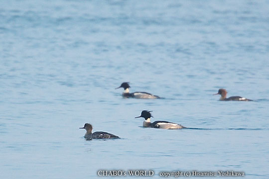 | ウミアイサやユリカモメを見ながらグランドの方へ引き返します。カワウも海に浮かんでます。 |