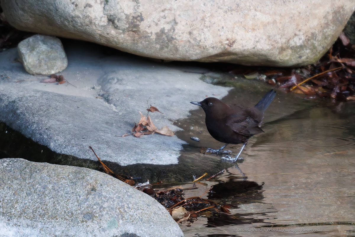 ダム湖へ上がって、 双眼鏡で見てると 上空をカラスにモビンクされた